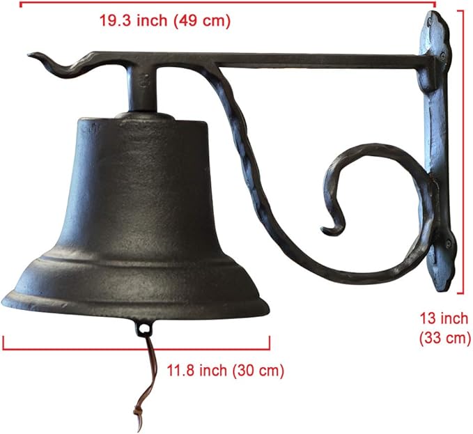 NACH Rustic Cast Iron Doorbell, Large Door Bells for Homes, Kitchen Door Bell, Dinner Bell, Black Doorbell, 19.3 x 11.8 x 13 Inches, JS-90-098