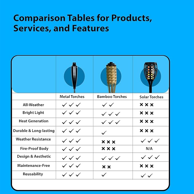 - ALL-METAL BASED CONSTRUCTION: The offered garden torches for table torches for outside spaces are designed using premium grade iron metal and finished in intricate detailing to bring out the realistic style, design and charm. It won’t corrode or bend like other cheaper alternatives; giving you long & real flame.