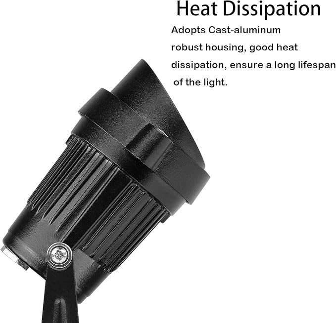 - Made of cast aluminum, with glass lens, low heat, adjustable tilt up/down. This is round base design, Include Spiked Stake. 【Please note: The instruction manual included in the packaging is incorrect, and the actual product is based on the description provided in the link】