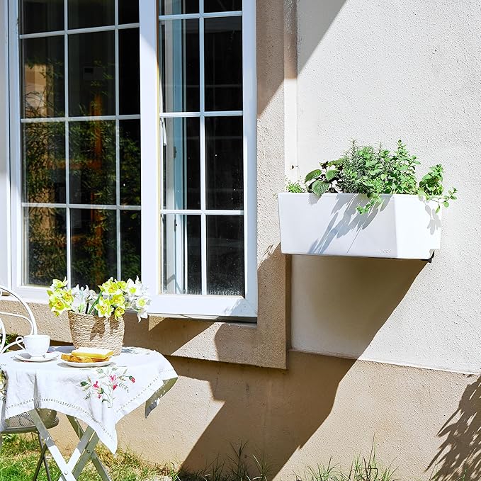 Glowpear Self Watering Planter Box - 23.6", White - UV Stable, Scalable Wall Mounts Plant Pot with Water Gauge, Indoor Outdoor for Vegetables, Flowers, Herbs, and Succulents, Gardening