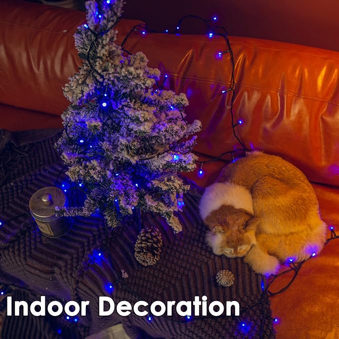 - 【Dark green cable Christmas Tree Light】Perfectly hiding on gardens, plants,and home decoration; 200pcs blue LEDs up to 73ft/23m total length with 10ft/3m leading wire, space between each LED: 4 inch/10cm.