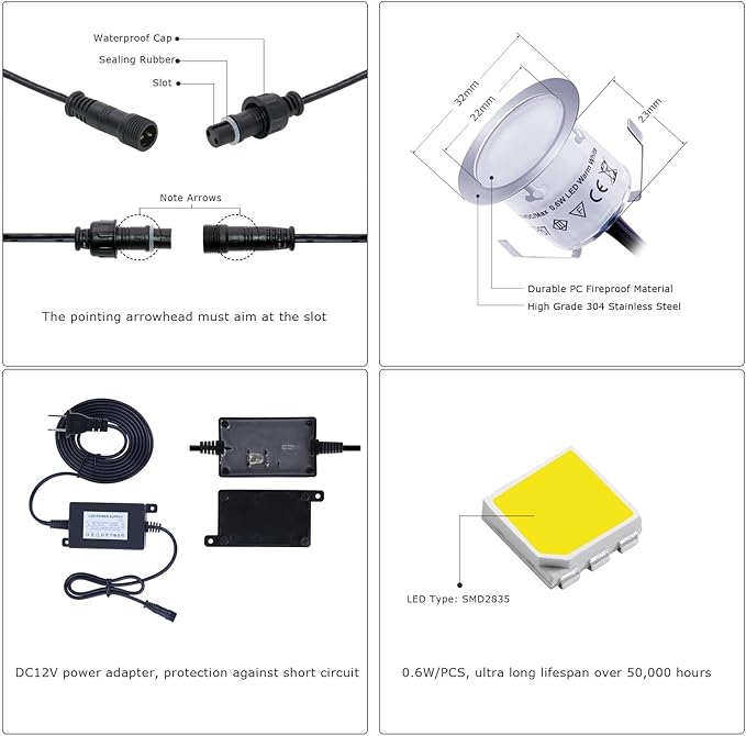 - 【Package Includes】10*LED Deck Lights&1*US Power Adapter&4*Screws.