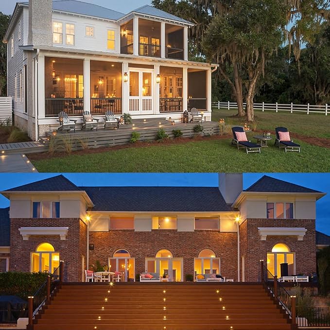 - 【Easy Installation】Drill holes, push lights in and connect cables. Can be installed for outdoor or indoor decoration, like deck step, stair, kitchen, stairway, bathroom, shelve, cabinet, living room, fountain, pool, backyard, eaves, fence, pergola, walkways, outside, accent lighting. The 10pcs lights are detachable and in parallel connection(The kit still works if one or two of them fails), so you can install all or part of them.