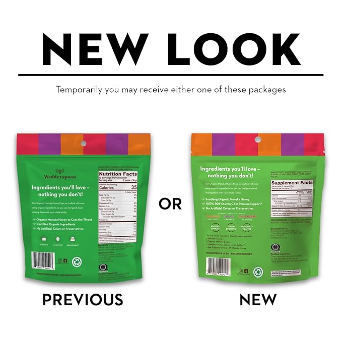 - ALL NATURAL LOLLIPOP CANDY: Wedderspoon Organic Lollipop suckers use fresh Manuka Honey; Appropriate for Children 4 and up; 100% RDA Vitamin C per two-pop serving, for kids aged 4-8, Packaging May Vary