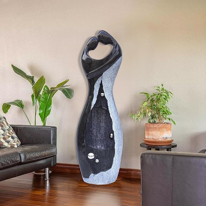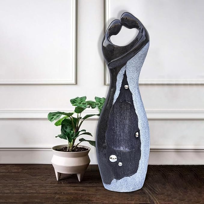 Modern Waterfall Fountains Graceful Hugging Couple Gurgling Water Features Outdoor Indoor Garden Faux Stone Zen Fountain in Marble Color for Courtyard, Patio, Lawn, Lobby 47" Height