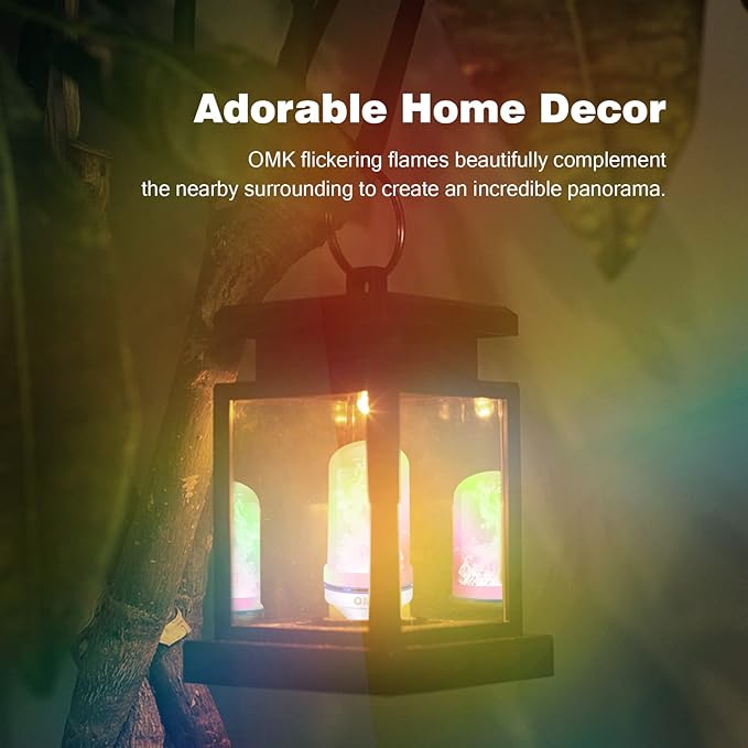 OMK LED Flame Effect Fire Light Bulbs (2 Pack), Flame Christmas Decor 4 Modes Flickering Fire Simulated Lamps, E26 Base Energy Efficient LED Bulb for Indoor/Outdoor Holiday