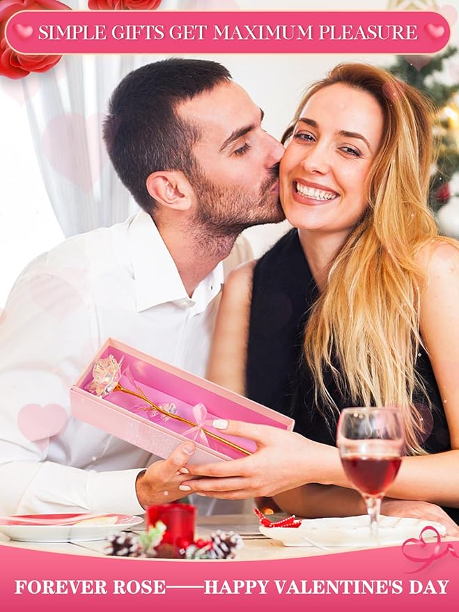 - Forever Eternal Rose Birthday Gifts for Women: Crystal flowers are handcrafted by skilled artisans, the petals and leaves are made of plastic and rose stems are made of polyethylene and gilded with gold foil. Glass roses come in a beautiful pink gift box and can be given directly to her. Box size: 10.6" x 3.9" x 2.6".