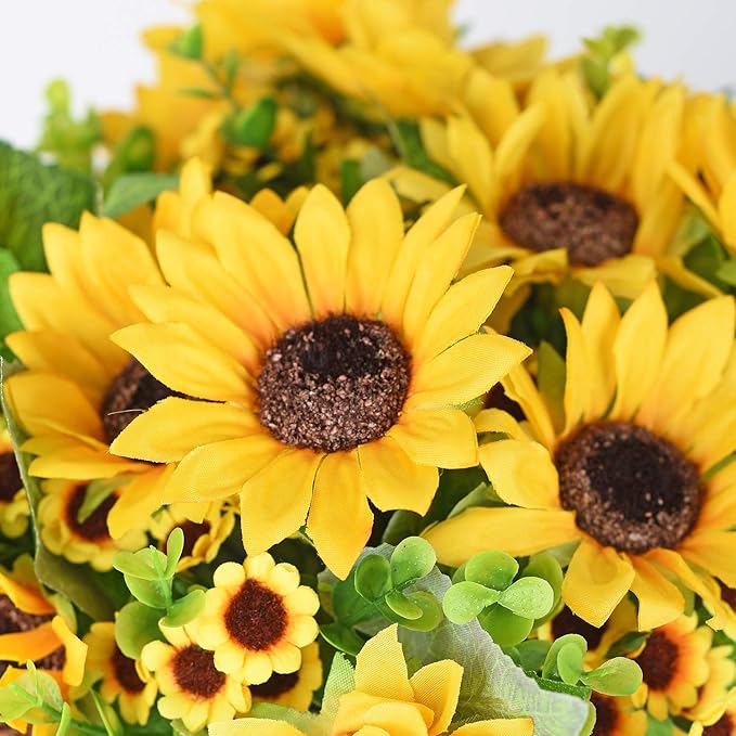 Lvydec Artificial Sunflower Bouquet, 2 Bunches Silk Sunflowers Fake Yellow Flowers for Home Decoration Wedding Decor (2 Pack)