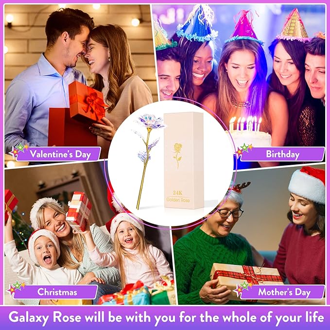 - Beffer Colorful Forever Glitter Roses Service: Each Galaxy rose delivered to you is a unique artwork. If you are not satisfied with our products or damaged during shipping, please feel free to contact us.
