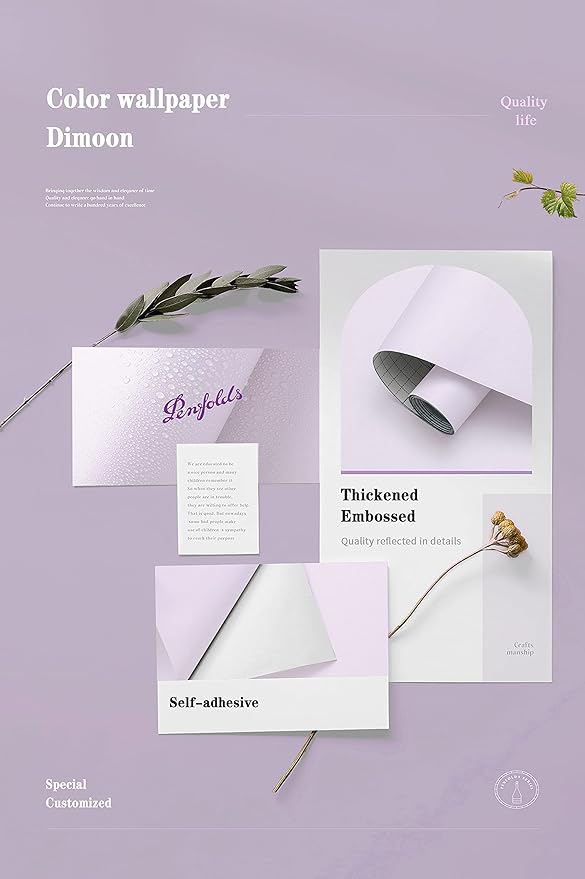 Dimoon 118''x17.7'' Purple Peel and Stick Wallpaper Contact Paper Modern Self Adhesive Wall Paper Removable Renter Friendly Textured Solid Color Shelf Cabinet Vinyl Roll (118''x17.7'',Light Purple)