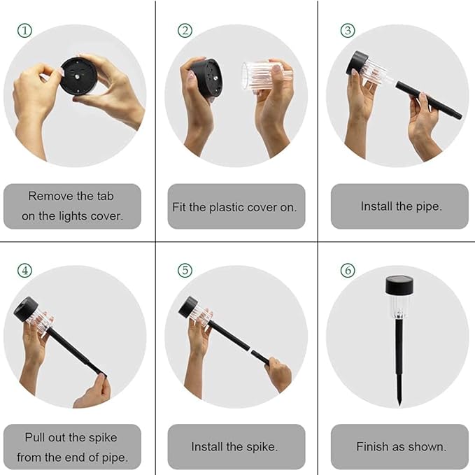 - ★ Easy for Installation: NO WIRES. These solar garden lights can be done in a few minutes. Just connect the parts and stake into the ground where there is direct sunlight. For your convenience, we provide the rechargeable batteries.