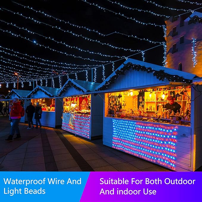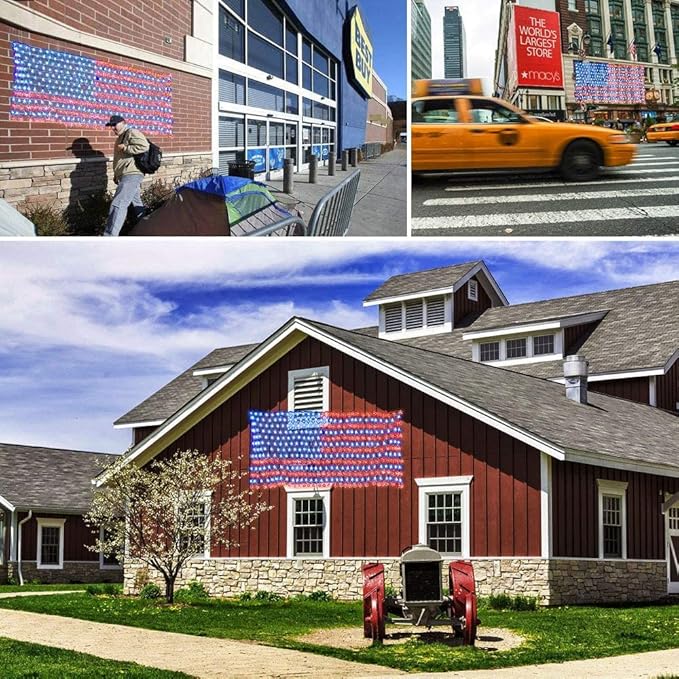 - 【Bright American Flag Light Effect for All Year Round Decoration】With this flag net light, you can display your patriotic spirit. It is great for Memorial Day, Independence day, 4th of july decorations, Christmas, holiday , party, ceremony, and many other celebration occasions. This American Flag decor bringing warm and pleasant atmosphere to your home or party