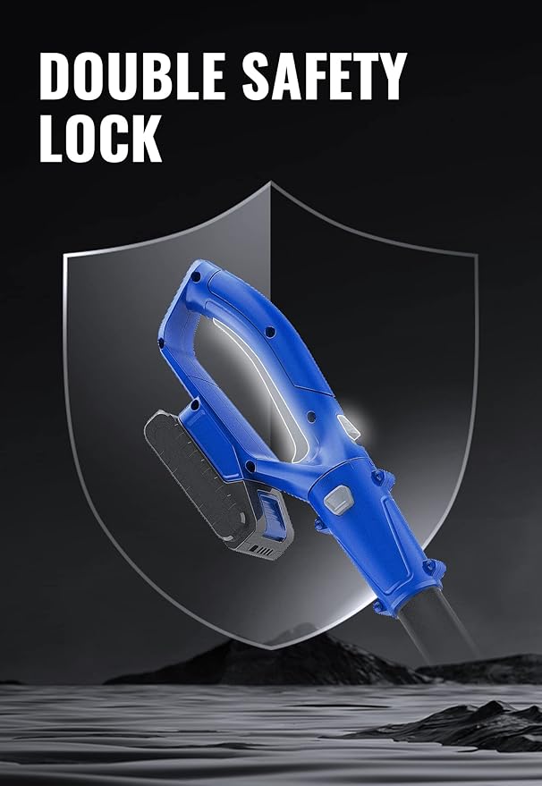 - Double safety lock:The tree trimmer pole saw has double safety lock .When you want to run the power pole saws, you need to push the buckle lock and handle at the same time to start the electric tree trimmer, which ensures your safety.