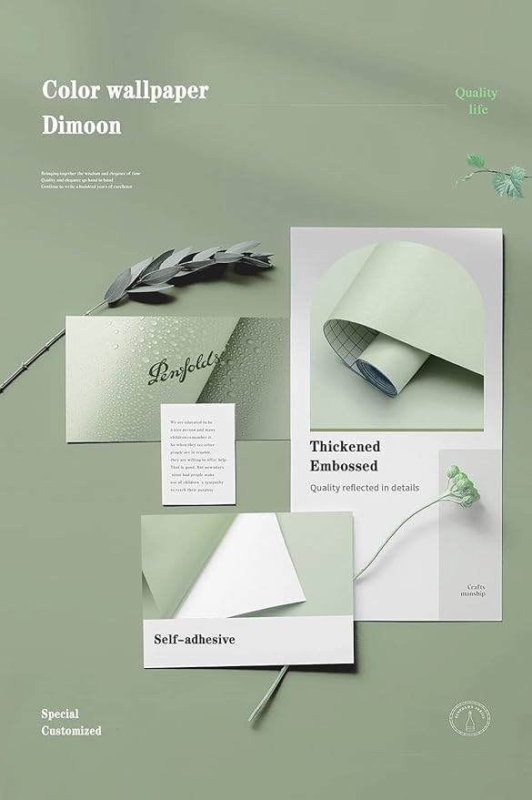Dimoon 236''x17.7'' Green Peel and Stick Wallpaper Contact Paper Modern Self Adhesive Wall Paper Removable Renter Friendly Textured Solid Color Shelf Cabinet Vinyl Roll (236''x17.7'',Light Green)