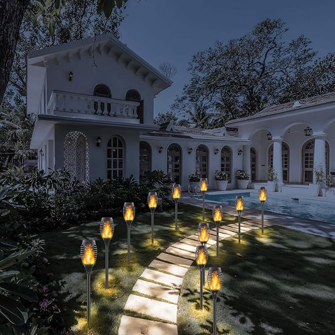 - WIDELY USED: The outdoor solar flame light torch is perfect for home, garden, yard, pathway, walkway, landscape decorations and garden parties, camping, barbecues, weddings, Christmas, Halloween and other festivals to provide the perfect campfire atmosphere.
