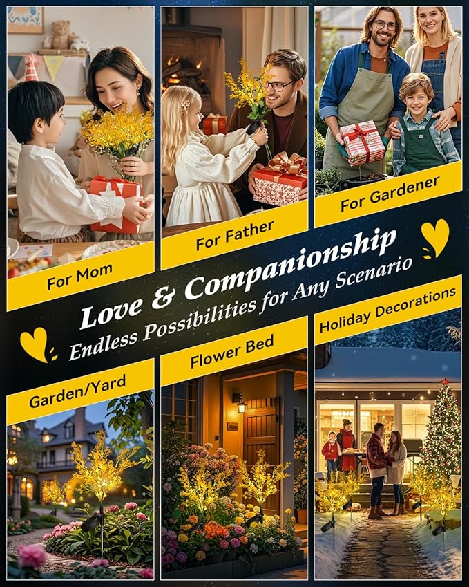 - 【Perfect Gardening Gift & Solar Garden Decor for Outside】Neporal golden solar garden lights decorative are ideal for garden decor, outdoor decor, yard decor, patio decor, plant pot decoration. Unique gardening gifts for women and gifts for people who like to garden, including moms, grandmas, dads, and friends, for occasions such as Mother's Day, Father's Day, Valentine's Day, housewarmings, birthdays, Thanksgiving, Christmas, and New Year.