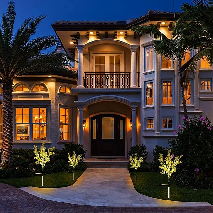 Neporal Garden Solar Lights Outdoor Waterproof IP65 4 Pack, 7-Stems Dusk to Dawn Golden Solar Flowers, Bigger Solar Panel for Garden,Yard, Patio Outdoor Decorative