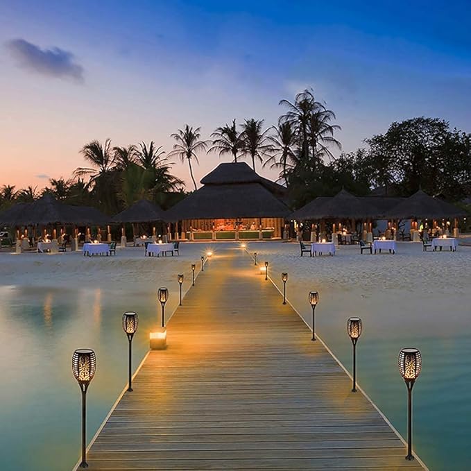 - Easy Install & Outside Waterproof: Easy to install solar lights outdoor waterproof where under direct sunlight without tool and wire. With excellent ABS material and waterproof design, solar flame torch lights can withstand most weather conditions.
