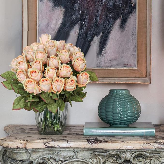 - ๐น REAL TOUCH FABRIC - This real touch roses artificial flowers are made of special smooth velvety feel fabric Instead of silk, combining special craftsmanship to make artificial roses with stems fresh touch and soft petals. This material is eco-friendly, weatherproof,non-toxic and has no abnormal odour.Our artificial single rose are so beautiful and perfect you will truly think they are real