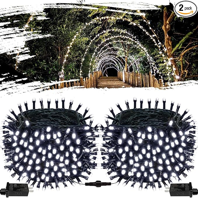 OZS 2Pack 164ft 400 LED String Lights Outdoor/Indoor, Extendable String Lights for Christmas Trees, Waterproof 8 Modes Green Wire Lights Holiday for Christmas Decorations (Cool White)