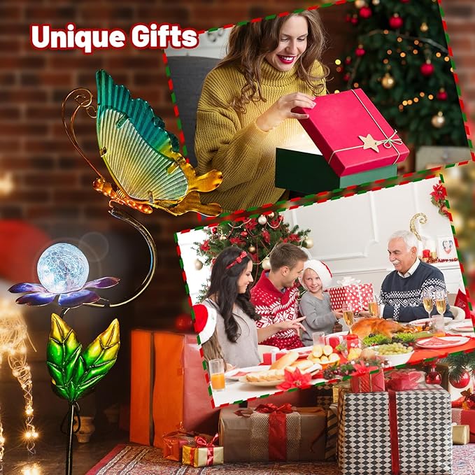 - 【Solar Garden Lights】-Design with butterfly collecting pollen' scense decoration.The solar butterfly garden lights will light up automatically at night.Infuses your garden with lively soul and add more fun