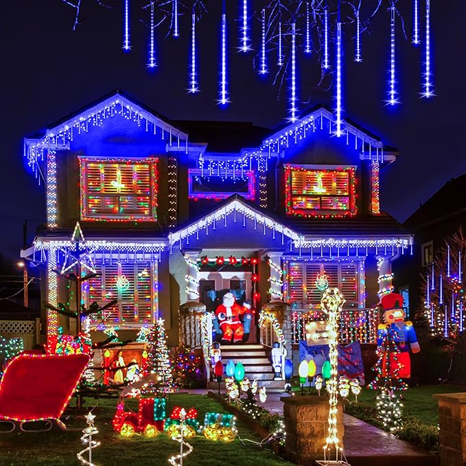 - Romantic Meteor Shower Lights: When the lights is turned on, the led meteor shower light of every bulb turns on and out one in sequence then have a slight delay on each tube, creating a dynamic and cascading effect that resembles a meteor shower or falling raindrop in the night sky. Available in cool white, warm white, blue, blue and white, you can choose your favourite color!