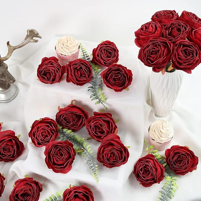 - Features: The red fake flowers roses heads with realistic and vintage looking, especially the edge of the flower heads with dried burnt feature, different from normal silk rose heads, fake flower heads, foam roses. If you are into vintage atmosphere, our dried bulk flower heads burgundy roses artificial flowers for crafts are your great choice