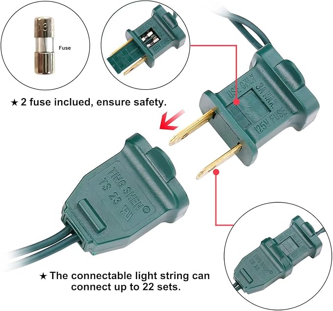 - 【Connectable】: The LED christmas light strings can be realize end-to-end connection up to 22 sets(2200 Counts) to meet your different decoration needs, these is the great idea for your bedroom, stair railing, garden, lawn, porch, patio, gate, tree etc