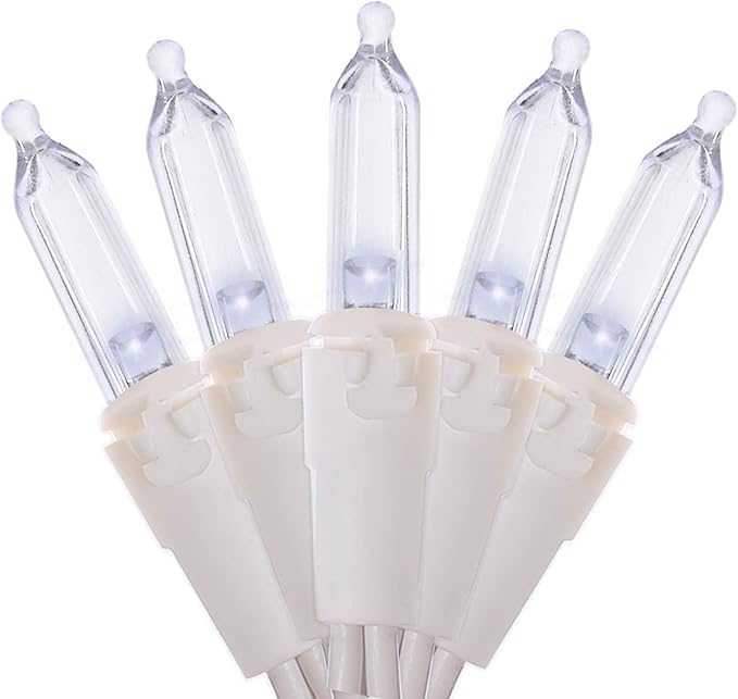 - 【Mini LED Christmas Lights Specification】: This white wire christmas string lights includes 100 count cool white led lights, total length 35.3ft, lights length 33ft and each led is 4 inches apart, 24 inches lead wire, 4 inches end connector (Extra 2 x replacement bulbs and 2 x fuse included)