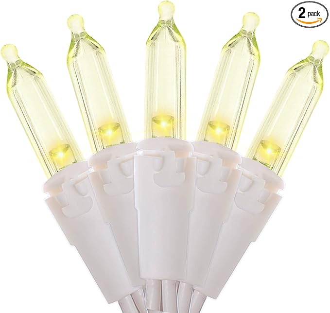 - 【Mini LED Christmas Lights Specification】: 2 Sets - white wire christmas string lights includes 100 count warm white led lights, total length 35.3ft, lights length 33ft and each led is 4 inches apart, 24 inches lead wire, 4 inches end connector (Extra 2 x replacement bulbs and 2 x fuse included)