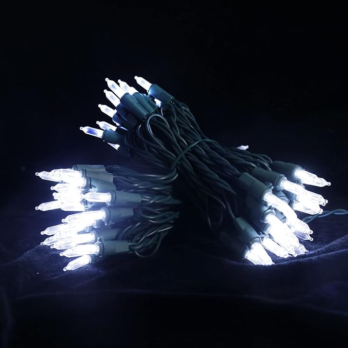 - 【Mini LED Christmas Lights Specification】: 2 Sets - green wire christmas string lights includes 100 count cool white led lights, total length 35.3ft, lights length 33ft and each led is 4 inches apart, 24 inches lead wire, 4 inches end connector (Extra 2 x replacement bulbs and 2 x fuse included)