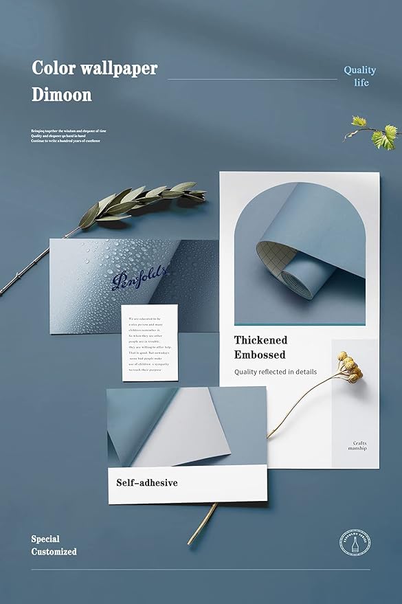 Dimoon 590''x23.6'' Blue Peel and Stick Wallpaper Contact Paper Modern Self Adhesive Wall Paper Removable Renter Friendly Textured Solid Color Shelf Cabinet Vinyl Roll (590''x23.6'',Blue Grey)