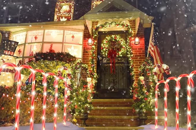 - Merry Christmas: The Christmas is coming soon! The Christmas candy light is a perfect way to decorate your pathway of your home. Creating a nostalgic decorative charm, and delight your neighbors and guests to your Christmas party, Making it the perfect Christmas outdoor decorations