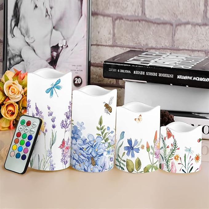 Ystardream Lavender Orchid LED Flameless Candles with Remote and Timer, Battery Operated Flickering for Festival Wedding Home Party Decor 4pcs