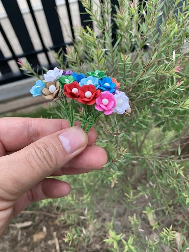 100 pcs Mini Flowers Mulberry Paper Flowers 13-15 mm Scrapbook Craft Card DIY Craft Using for Crafts, Bouquets, Scrapbooks, Decorations, Greeting Cards Artificial Flowers (Mixed 10 Colors)