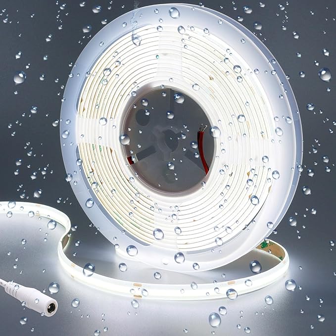24V COB LED Strip Light Cool White 6000K 5M/16.4ft 2400LEDs Waterproof IP65 Uniform Glow CRI 93+ Flexible LED Tape Lights for DIY Cabinet Bedroom Kitchen Home Decor(No Power Supply)