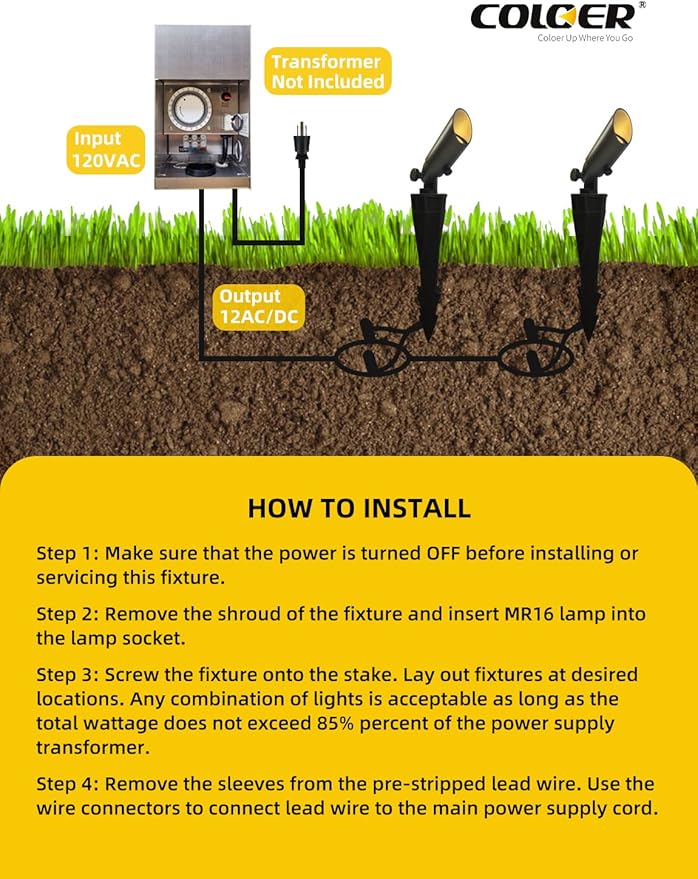 - Lifetime Warranty: The COLOER mini landscape spotlight uses a design with separate light fixture and bulb, which offers a longer lifespan compared to the non-detachable integrated design. You can replace the bulb without having to replace the entire fixture just because the bulb is broken. We offer a lifetime warranty on the brass light fixture. We stand behind our product with our top-rated customer service. Please don't hesitate to contact us if you have any issues.