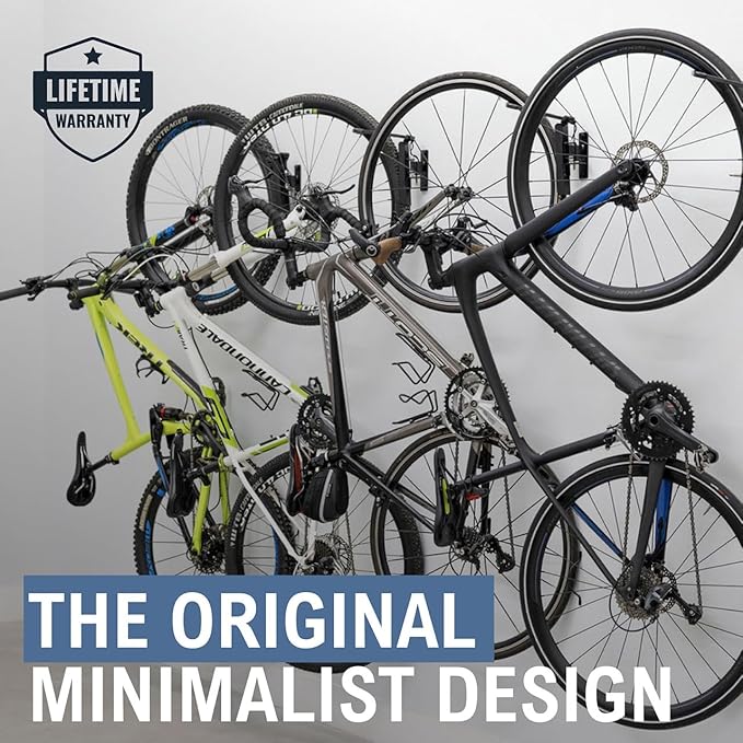 - WALL-MOUNTED BIKE STORAGE – Reclaim your garage, shed, or apartment space with this space-saving vertical bike rack. Designed to mount securely to wall studs, each rack stores one bicycle flat against the wall, making it ideal for indoor bike storage in tight spaces. Compatible with a variety of bikes including road bikes, e-bikes, folding bikes, and more. Fits tires up to 2.6" wide and up to 29" in diameter.