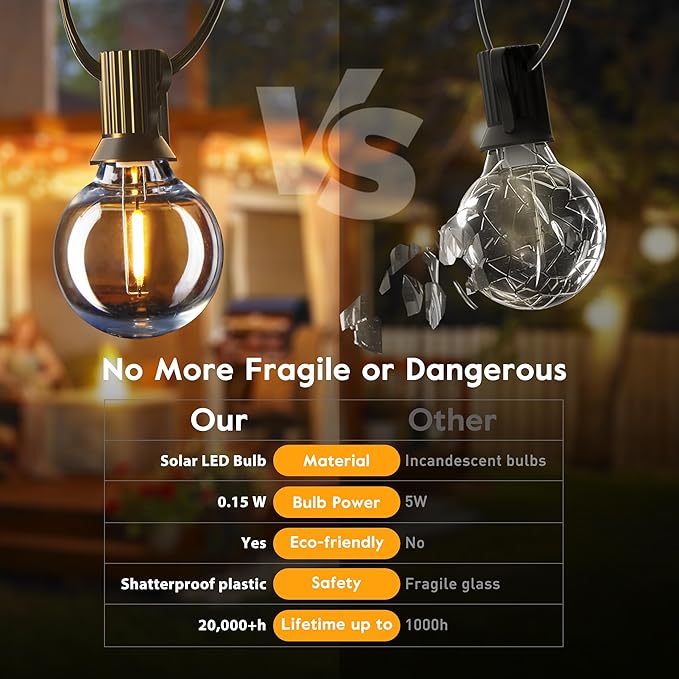- Application: Replacement LED light bulbs for G40 solar string lights. Perfect outdoor lighting for patio, amazing for residential, commercial, festival and activities like home, backyard, yard, window, fence, garden, deck, pool, canopy, porch, pergola, tent, poles, camping, gazebo, booth, bistro, bar, pub, cafe, restaurant, wedding, hotel, mall, Christmas