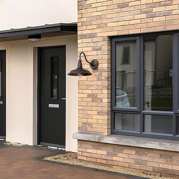 - ★【Gooseneck Outdoor Wall Sconce】The set of 2 outdoor barn light with elegant gooseneck arm combines vintage and industrial styles, bringing an attractive and classy look to your home, easily sublimate your various decorations and create a pleasant atmosphere.