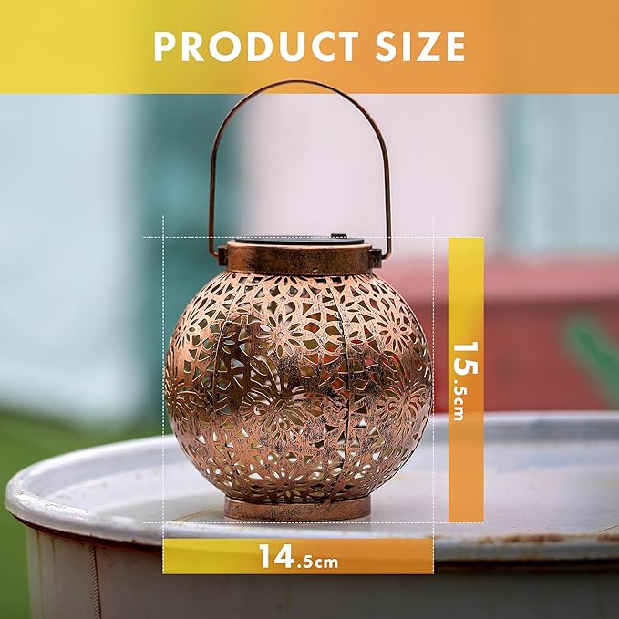 - 【WIDELY APPLICATION】The decorative lantern can be widely used in different occasions, including cafe, patio, yard, park, pathway, garden, etc. What's more, the solar hanging lanterns comes with hooks, so they can be hung on porches, trees, pergolas or put them on table two ways to use, Perfect gifts for holidays, housewarming and gardening.