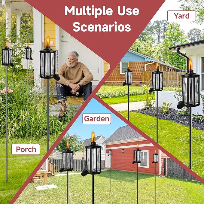 - 【Decoration & Entertainment】The outdoor torches ideal for backyard decoration and lawn lighting. It is very suitable for terrace tropical theme parties, beach or jungle theme parties, outdoor concerts and Christmas Party. Make your party romantic and warm.