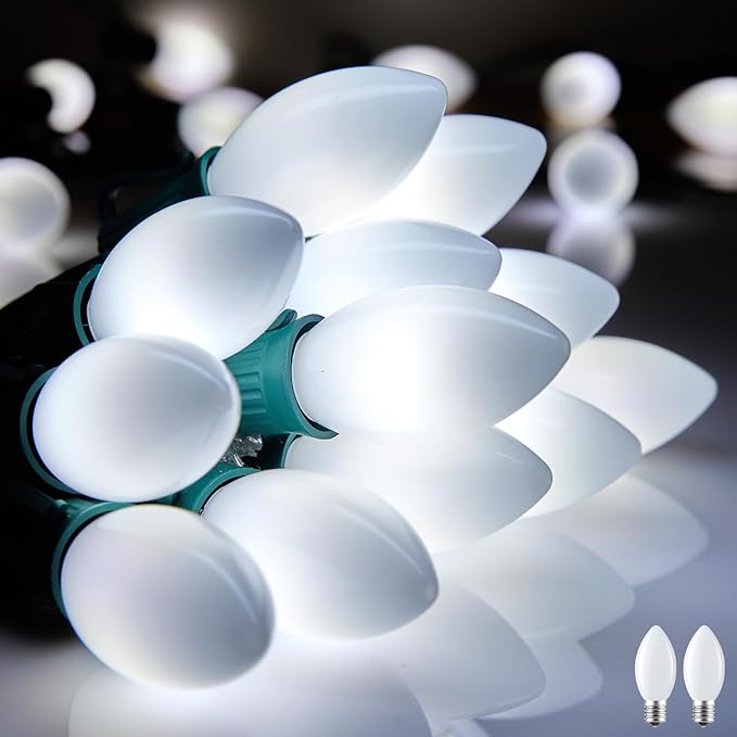 - Old Fashioned Appearance: This traditional C9 LED plastic bulb of Christmas lights is made of inner abrasive finish, creating a misty and retro pure white lighting effect, harmonious and comfortable atmosphere, lighting up your life and creating exclusive memories for you
