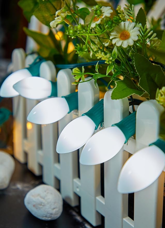 - Applicable to a Variety of Occasions: C9 LED Christmas lights outdoor are suitable for indoor and outdoor daily and holiday decorative accessories, ideal for commercial grade buildings, cafe, bistro, porch, patio, gazebo, garden, backyard and many other decorative options, such as Christmas, wedding, party, camping and other festive and leisure activities necessary for decoration