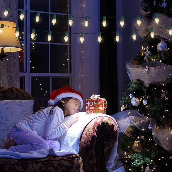 - ๐ Durable and Long-Lasting: Plug in christmas lights outdoor is made of shatterproof and waterpoof led frosted white bulbs, The soft, frosted finish on the C7 LED bulbs provides a gentle, ambient glow that's perfect for creating an enchanting atmosphere. Long lifespan up to 30,000 hours. led frosted white patio lights suitable for both indoor and outdoor use, our C7 LED string lights are built to withstand the elements, making them a durable choice for year-round decoration.