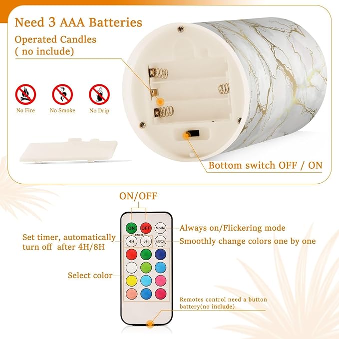 - Convenient Remote Functions: Includes an 18-key remote controller with a timer. You can control these candles remotely when they are placed somewhere difficult to touch. Set 4H/8H timers will save you trouble turning them on/off, they will come back on automatically at the same time every day. Also, you can adjust the light color as you want