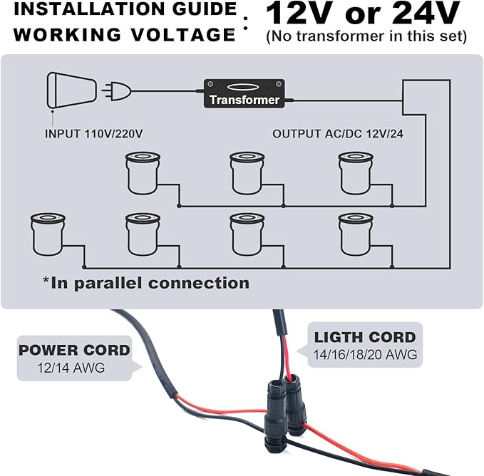 - ★AC/DC Adaptive: 12 to 24V input working voltage, compatible with most low voltage landscape lighting,Just wire it with voltage transformer, and it will work for you. But also please noticed that the voltage transformer is not included.