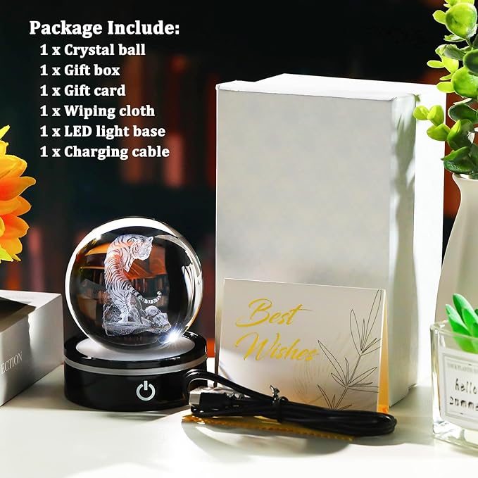 - Gift Box Packaging: The packaging includes a crystal ball, LED base, USB cable, gift box, gift card, and wiping cloth. Crystal night light creates a comfortable light, suitable for placing on table, bedside table, dining table, party, cafe etc.