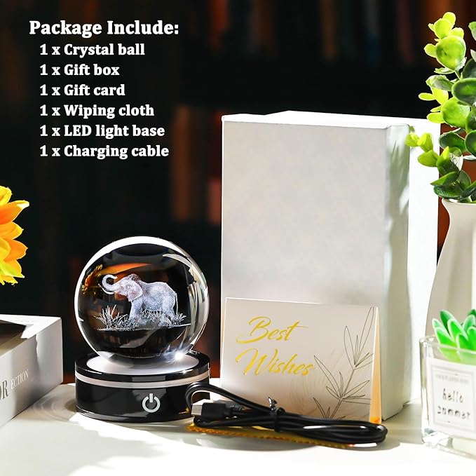 - Gift Box Packaging: The packaging includes a crystal ball, LED base, USB cable, gift box, gift card, and wiping cloth. Crystal night light creates a comfortable light, suitable for placing on table, bedside table, dining table, party, cafe etc.