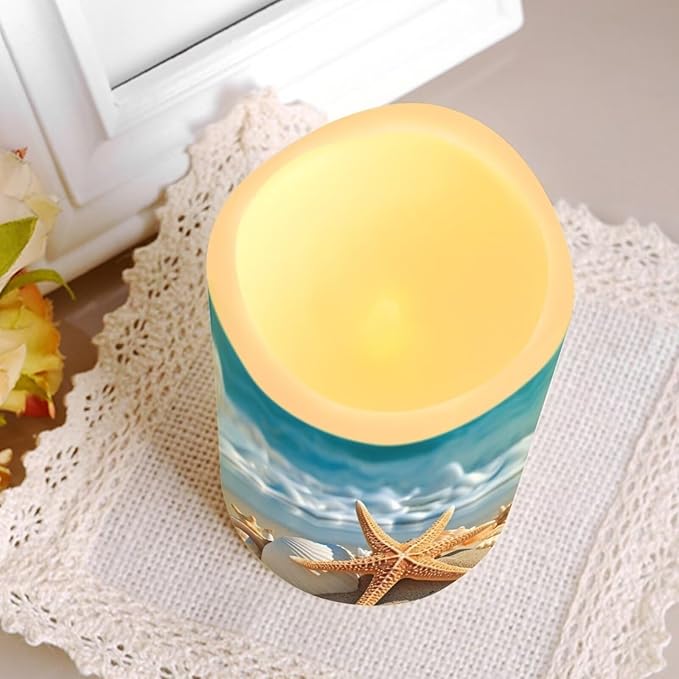 Ystardream Beach Starfish Flameless Candles with Remote Battery Operated Candles Realistic LED Candles with Remote and Timer Set of 4 for Valentines Home Wedding Birthday Decoration